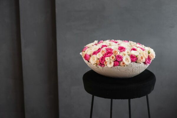 An elegant hatbox crafted from premium materials and designed to replace traditional vases. It’s easy to carry and display — perfect for restaurants, dinner parties, or any occasion where beauty travels with you